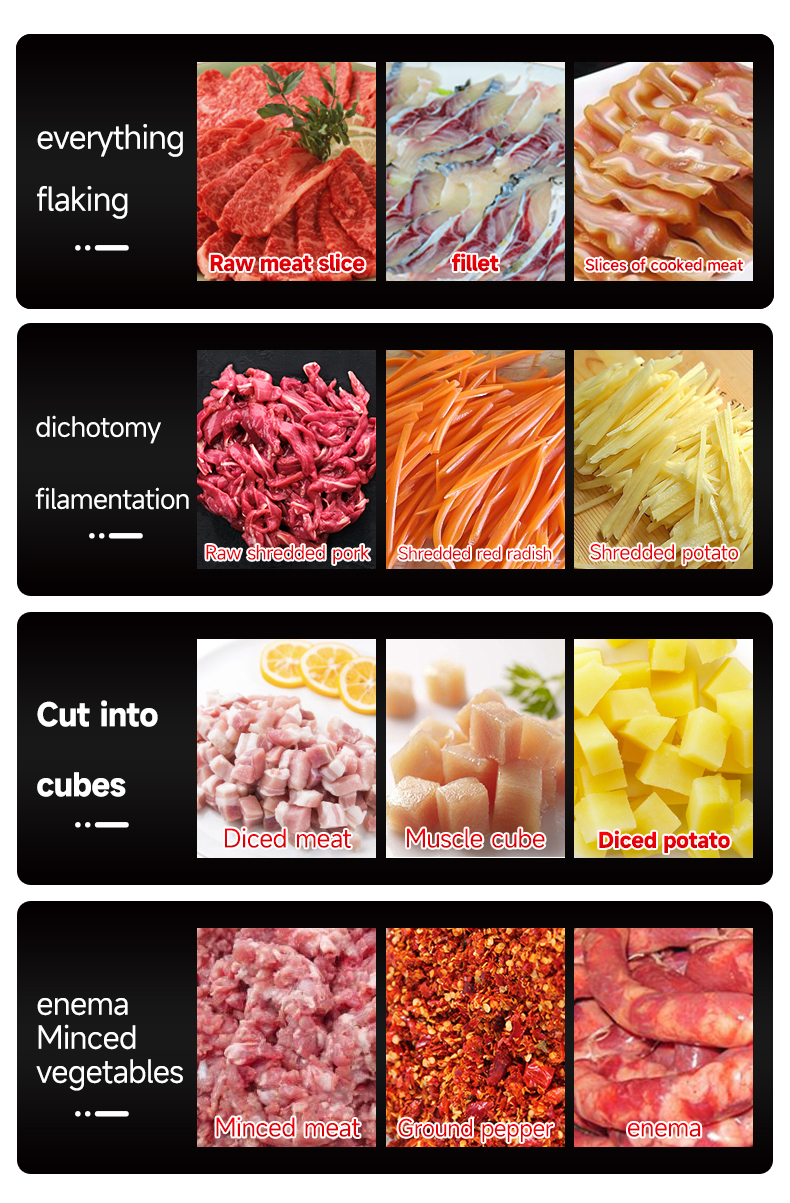 Machine Function: Slices meat / Cuts into strips / Minces meat