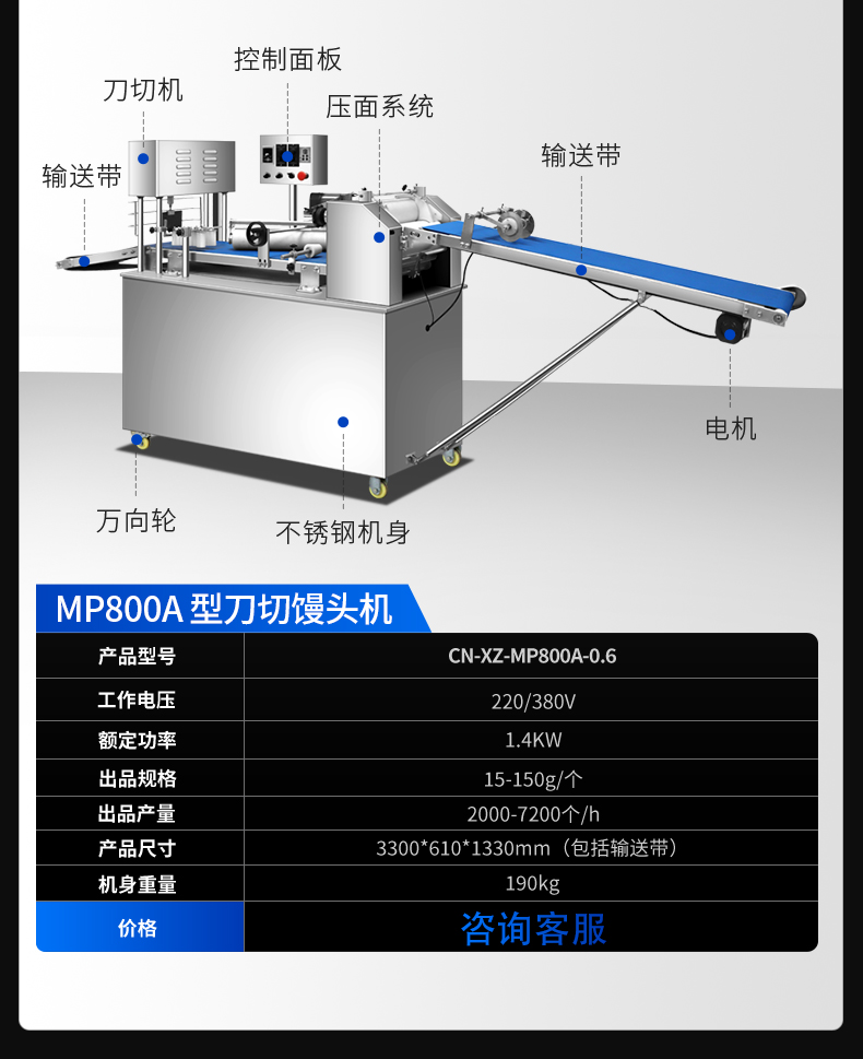 出品规格:包子15-150g/个,馒头10-200g/个